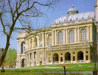 Aerial view of the Odessa Theater of Opera and Ballet (Odessa Opera House). With this kind of grandeur, its obvious why critics rank the Theater as the 2nd most beautiful opera house in Europe, after the Viennese Opera House.